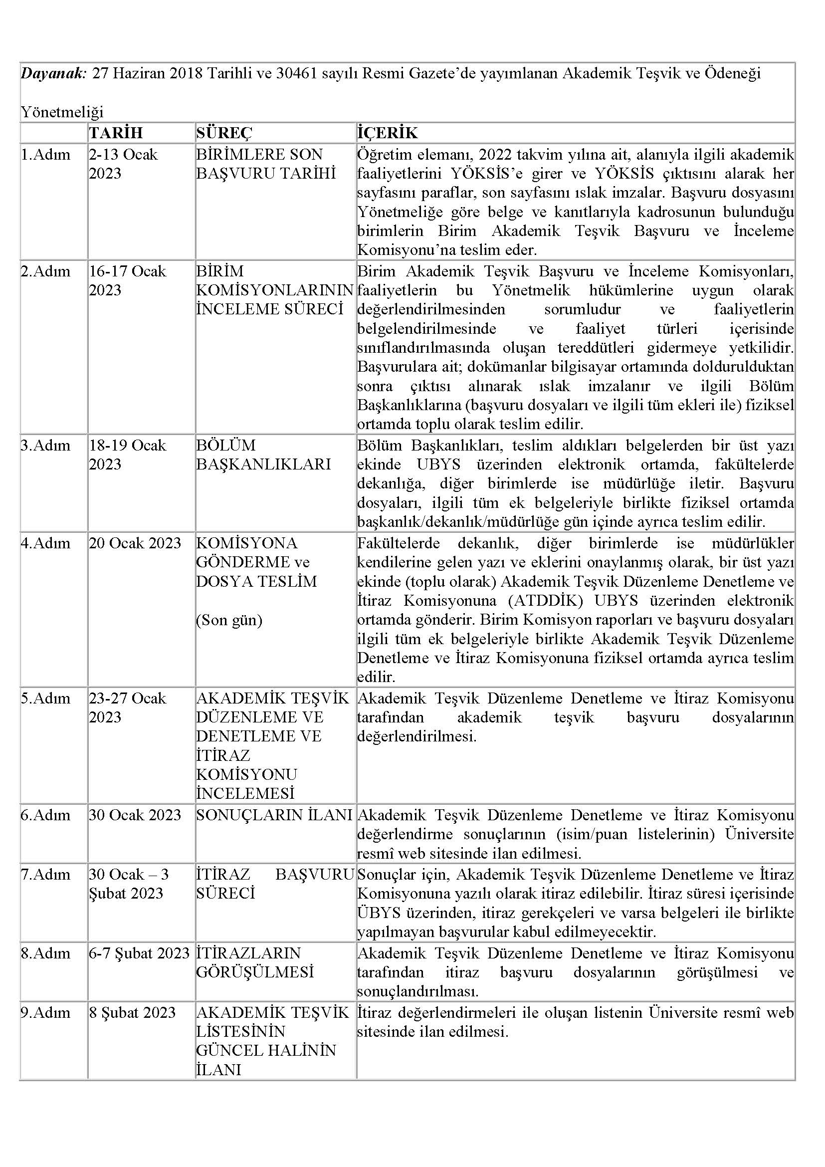 2023 YILI AKADEMİK TEŞVİK ÖDENEĞİ BAŞVURU TAKVİMİ