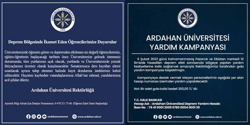 Deprem Bölgesinde İkamet Eden Öğrencilerimizin Dikkatine Ve Ardahan Üniversitesi Yardım Kampanyası
