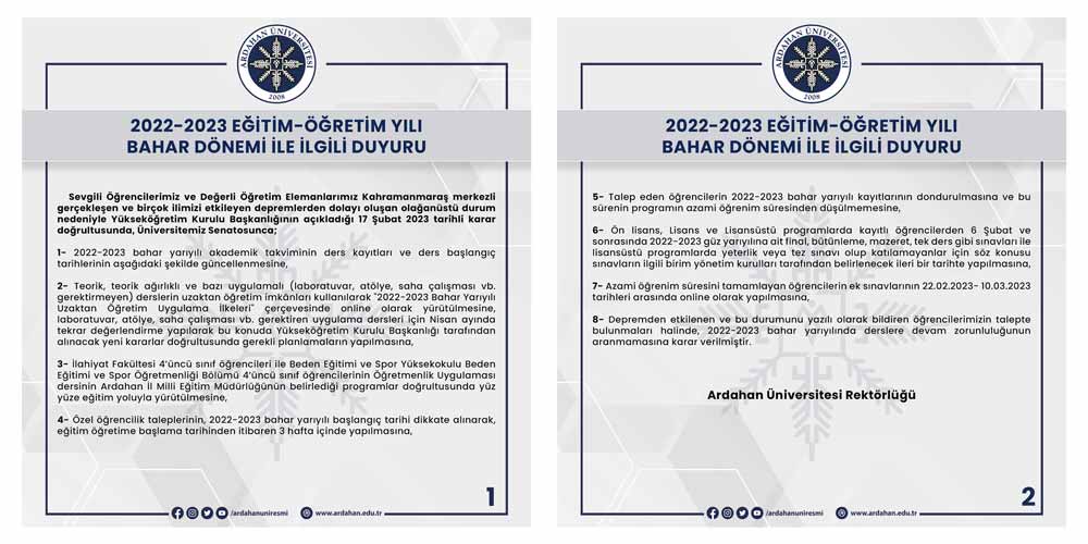 (ÖNEMLİ)2022 - 2023 Akademik Yılı Bahar Dönemi Hakkında