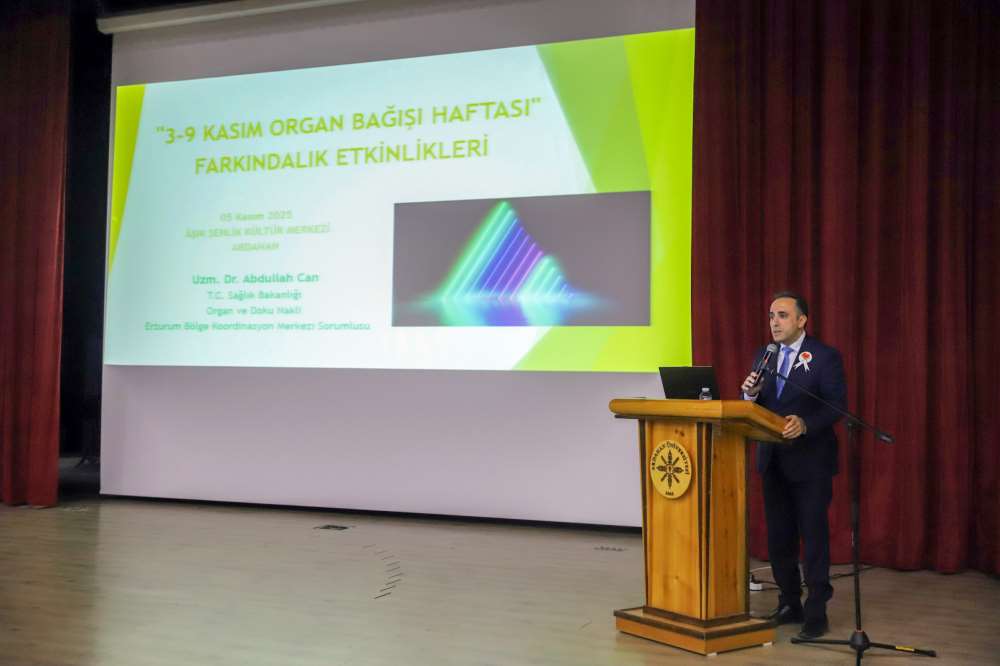 Üniversitemiz Sağlık Bilimleri Fakültesi ile Ardahan İl Sağlık Müdürlüğü iş birliğinde düzenlenen “Organ Bağışı” paneli, 05 Kasım 2025 tarihinde Âşık Şenlik Kültür Merkezi’nde gerçekleştirildi. Akademisyenler, sağlık çalışanları ve öğrencilerin yoğun katılım gösterdiği etkinlikte, organ bağışının tıbbî, etik ve manevi boyutları çok yönlü olarak ele alındı.