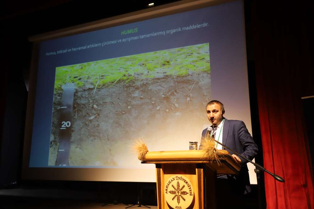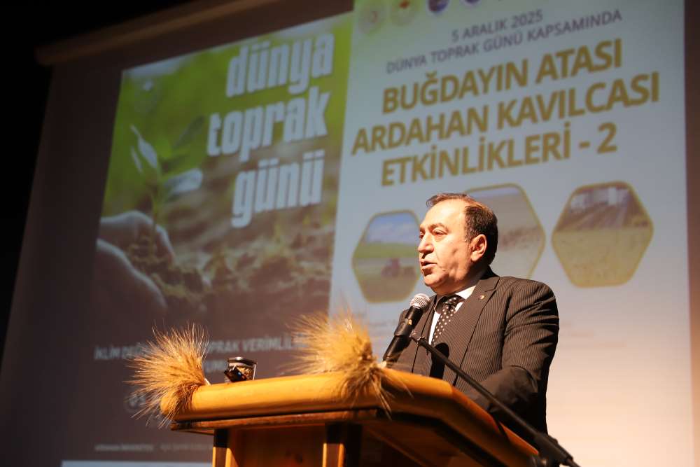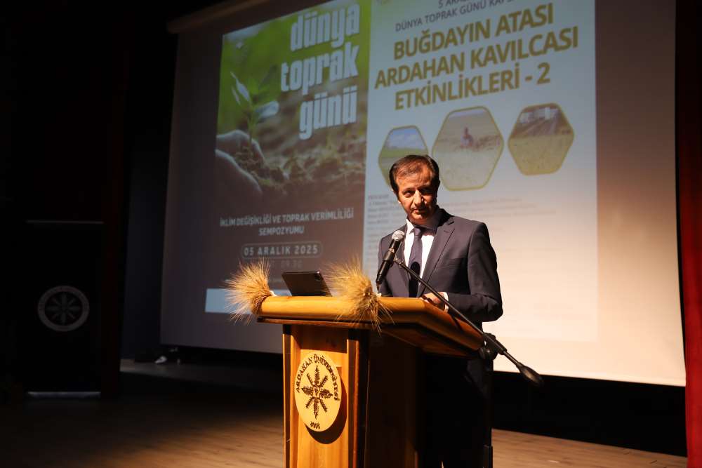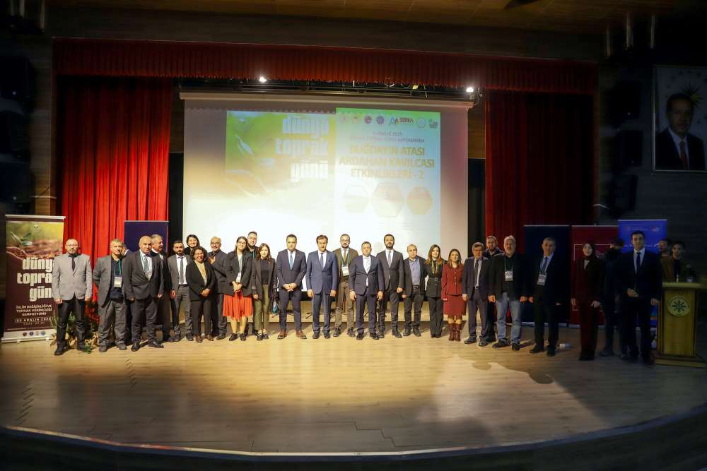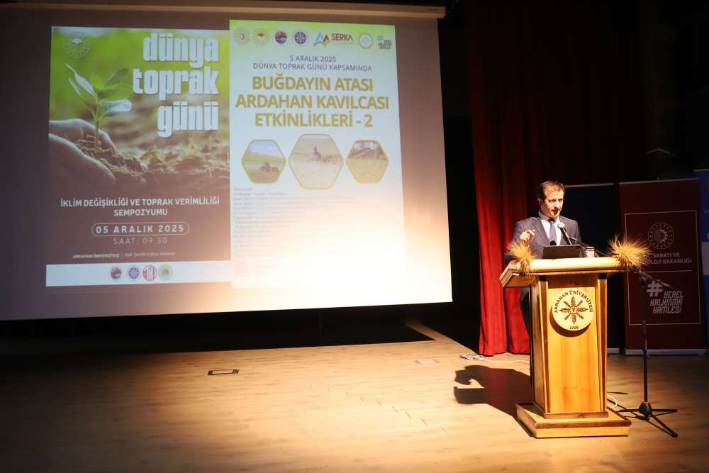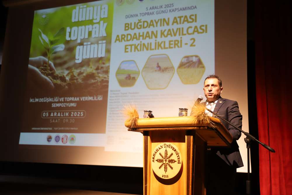 Üniversitemiz, 5 Aralık Dünya Toprak Günü kapsamında “Buğdayın Atası Ardahan Kavılcası Etkinlikleri – 2” programına ev sahipliği yaptı. Aşık Şenlik Kültür Merkezi’nde düzenlenen etkinliğe; Ardahan Vali Vekili Mustafa Berat Kasımoğlu, Rektörümüz Prof. Dr. Öztürk Emiroğlu, Rektör Yardımcımız Prof. Dr. Mustafa Yıldız, Genel Sekreterimiz H. Caner Akkurt, Tarım ve Orman Bakanlığı Yayın ve Tanıtım Hizmetleri Daire Başkanı Şaban Özakın, Ardahan Tarım ve Orman İl Müdürü M. Fatih Cineviz, Ardahan Ticaret ve Sanayi Odası Başkanı Çetin Demirci, SERKA Ardahan Koordinatörü Eren Yurtalan, Erzurum Orman Bölge Müdürü Serkan Karakurt, akademik ve idari personel, panelistler, basın temsilcileri ve çok sayıda öğrenci katıldı. Programa katılamayan AK Parti Ardahan Milletvekili Kaan Koç ile CHP Ardahan Milletvekili Özgür Erdem İncesu, gönderdikleri mesajlarda etkinliğin önemine vurgu yaparak başarı dileklerini iletti. Protokol konuşmalarında Kavılca buğdayının bölgesel değeri vurgulandı. Programın açılışında konuşan Ardahan Tarım ve Orman İl Müdürü M. Fatih Cineviz, uluslararası tartışmalarda giderek daha fazla yer bulan “gıda milliyetçiliği” kavramına dikkat çekerek, günümüzde gıda arz güvenliğinin ülkelerin ekonomik kapasitesinden bağımsız biçimde kırılganlaştığını vurguladı. Rusya–Ukrayna Savaşı ile birliktebu kırılganlığın küresel ölçekte somut biçimde görüldüğünü belirten Cineviz, Tarım ve Orman Bakanlığı’nın son iki yıldır yürüttüğü üretim planlaması çalışmalarının bu nedenle stratejik bir önem taşıdığını ifade etti. Ardahan Ticaret ve Sanayi Odası Başkanı Çetin Demirci ise Kavılca buğdayının yalnızca bölgenin kadim bir tarım ürünü değil, aynı zamanda Ardahan’ın geleceğe dönük ekonomik vizyonunda yer alması gereken stratejik bir marka değeri olduğunu dile getirdi. Demirci, Kavılcanın işlenmesi, ambalajlanması ve katma değer üreten bir ürün haline getirilmesinin, şehrin ekonomik büyümesine doğrudan katkı sağlayacak önemli bir fırsat olduğunu belirtti. Erzurum Orman Bölge Müdürü Serkan Karakurt ise, iklim değişikliğiyle mücadele eden güncel ormancılık uygulamalarını anlattı.