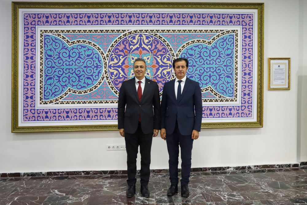 Yazar Hayati İnanç, Üniversitemizde gerçekleştireceği konferans kapsamında Rektörümüz Prof. Dr. Öztürk Emiroğlu’nu makamında ziyaret etti.