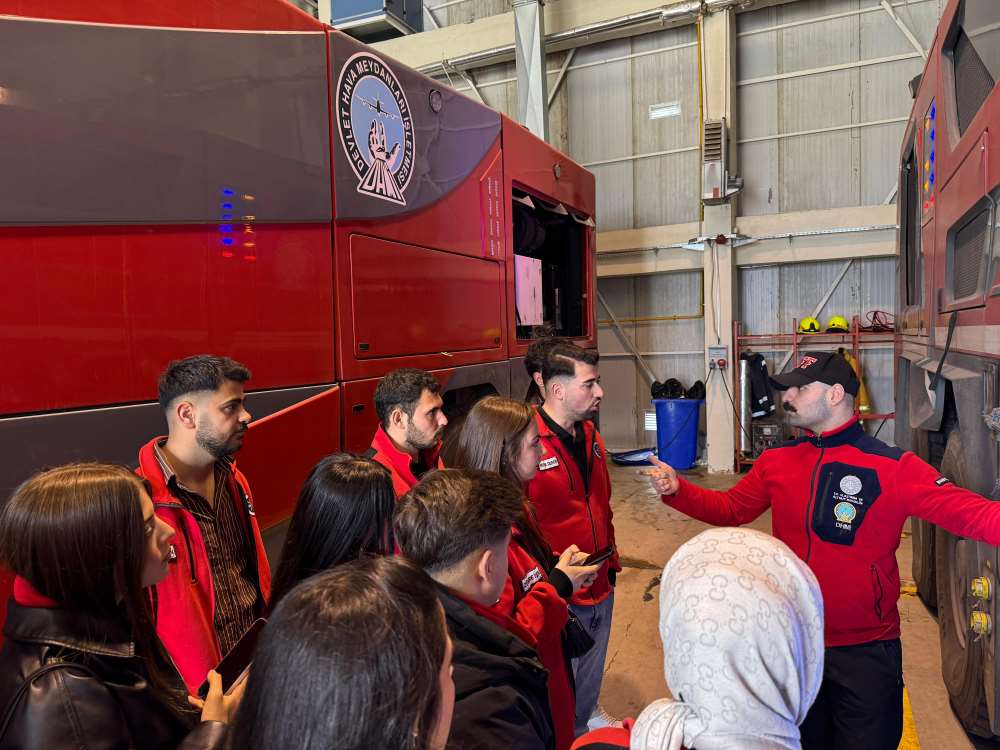 Mesleki gelişim süreçlerini desteklemek amacıyla gerçekleştirilen ziyaret kapsamında öğrenciler, Aircraft Rescue and Fire Fighting (ARFF) ekiplerinin operasyonel çalışma prensiplerini yerinde inceleme imkânı buldu. Teorik bilgilerini profesyonel çalışma ortamında gözlemleyen öğrencilerimiz, havalimanı itfaiyesinin müdahale kapasitesi, ekip organizasyonu ve uluslararası havacılık standartları hakkında detaylı bilgi edindi. Program sonunda, sürece sağladıkları kıymetli katkılardan dolayı Havalimanı Müdürü Sayın Oğuz Aydemir’e teşekkür edildi.