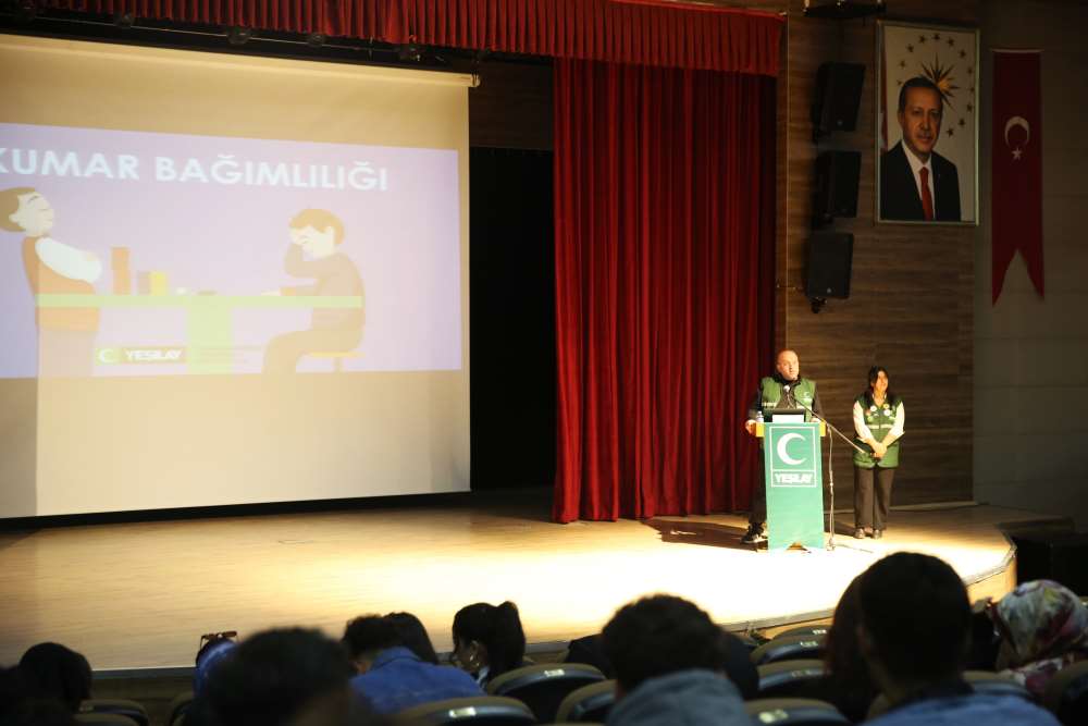 Üniversitemiz ile Ardahan Çalışma ve İş Kurumu İl Müdürlüğü (İŞKUR) tarafından ortaklaşa yürütülen İŞKUR Gençlik Programı kapsamında, katılımcı öğrencilere yönelik "Bağımlılıkla Mücadele" eğitimi düzenlendi. 30 Nisan 2026 tarihinde Âşık Şenlik Kültür Merkezinde gerçekleştirilen programda, Yeşilay Danışmanlık Merkezi (YEDAM) uzmanları bağımlılık türleri ve korunma yöntemlerine dair kapsamlı sunumlar yaptı. Yeşilay Ardahan Şubesi Başkanı Tolgay Gökdemir ve Akran Eğitimcisi Mukaddes Akgüç’ün eğitmen olarak yer aldığı etkinlikte, öğrencilerin fiziksel ve ruhsal sağlıklarını korumaya yönelik toplumsal farkındalık oluşturuldu.