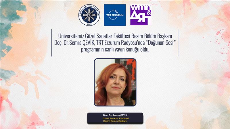 Üniversitemizin Güzel Sanatlar Fakültesi Resim Bölüm Başkanı Doç. Dr. Semra ÇEVİK TRT Erzurum Radyosuna konuk oldu. Çevik söyleşide eğitim programına ilişkin şu bilgileri paylaştı: “Woman&Art (Kadın ve Sanat Eğitim Programı) Ulusal Ajansın Erasmus+ Programı Mesleki Eğitim Stratejik Ortaklılar Projesi çerçevesinde hayata geçti. Bu proje Ankara’da bulunan Galerim Sanat Galerisinin önerisiyle ve Ardahan Üniversitesinin liderliğinde Ulusal Ajansa sunuldu. 9 ortağı bulunan ve Türkiye dâhil olmak üzere 5 yabancı ülkenin katılım sağladığı projemiz Ulusal Ajansta kabul edildi.”