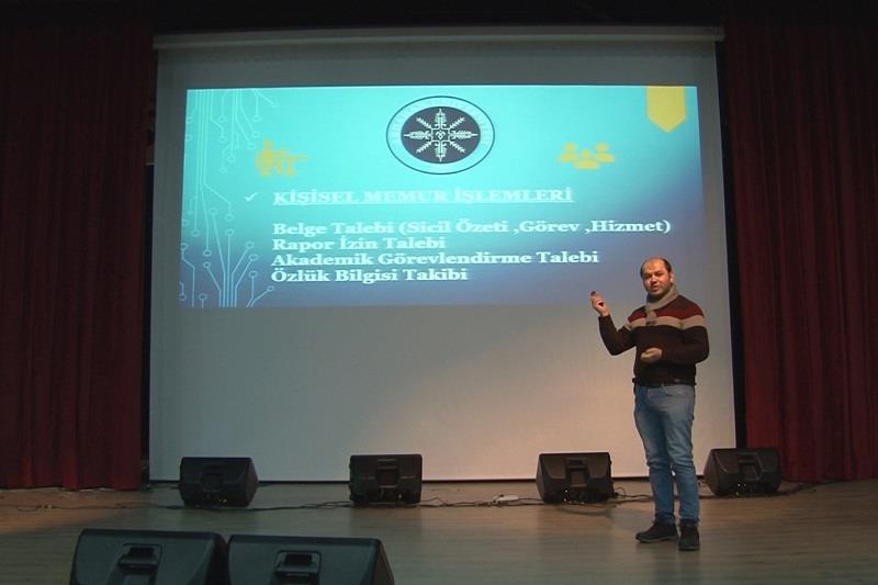 Üniversitemiz Bilgi İşlem Daire Başkanlığı tarafından Âşık Şenlik Kültür Merkezi’nde 23-24 Şubat tarihlerinde akademik personelimize, Üniversite Bilgi Yönetim Sistemi (ÜBYS) ve uzaktan eğitim sisteminin verimli bir şekilde kullanılmasına dair bilgilendirme toplantısı gerçekleştirildi. Bilgi İşlem Şube Müdürü Öğr. Gör. Selçuk Akyıldırım, yöneticiliğini yaptığı ÜBYS ve kurumsal e-posta kullanımına dair ayrıntılı bilgi sundu. Ardından Uzaktan Eğitim Uygulama ve Araştırma Merkezi (UZEM) Müdürü Öğr. Gör. Sinan Üst uzaktan eğitim sistemi ile ilgili sunumunu gerçekleştirdi.