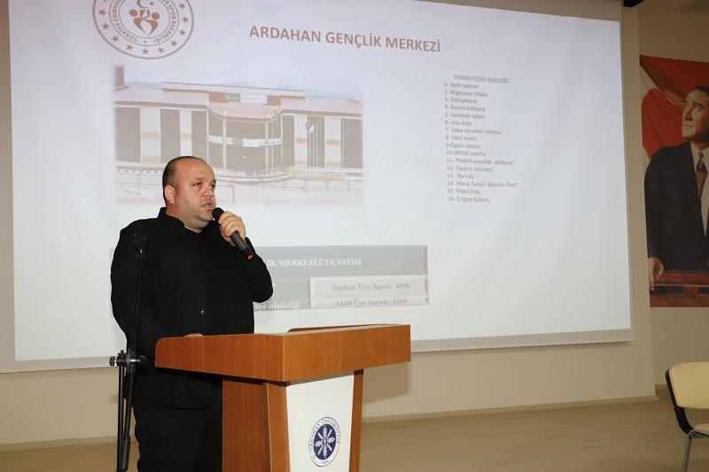 Üniversitemiz Teknik Bilimler Meslek Yüksekokulu, tüm programların öğretim planında yer alan Topluma Hizmet Uygulamaları dersi kapsamında hazırlanan ortak seminerler dizisinin ikincisini Teknik Bilimler Meslek Yüksekokulu Konferans Salonunda gerçekleştirdi. Teknik Bilimler Meslek Yüksekokulu Müdürü Dr. Öğr. Üyesi Zakir Çaldıran, ders yürütücüleri ve öğrencilerin katıldığı seminerde, gençlik lideri ve gönüllü öğrenciler konuşmalarını gerçekleştirdiler. Ardahan Gençlik Merkezi gençlik lideri Tolgay Gökdemir tarafından “Gençlik Merkezleri ve Genç Gönüllülük Çalışmaları” başlıklı bir konuşma gerçekleştirildi. Gökdemir konuşmasında; gençlik merkezlerinin çalışma alanlarından, yapılan etkinliklerden ve gençlik merkezleri vizyonlarından bahsetti. Genç gönüllü olan; Müberra Şentürk, Ömer Üleş ve Tülin Kansu ise konuşmalarında deneyimlerini, gönüllülük çalışmalarına nerede, nasıl başladıklarını ve gönüllülük kavramının hayatlarında nasıl bir dönüşüme sebep olduğunu anlattılar. Seminer belge takdimiyle son buldu.