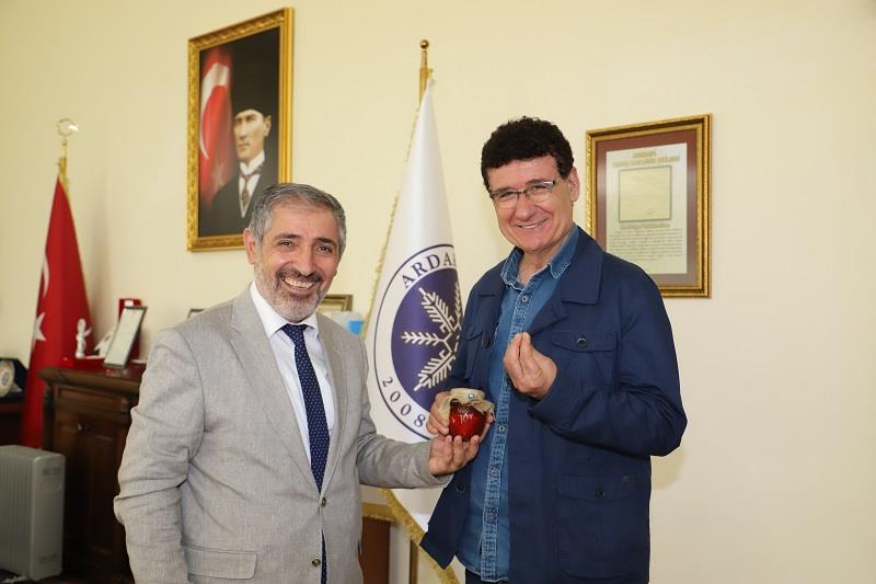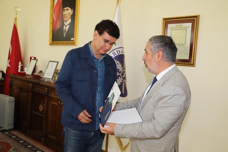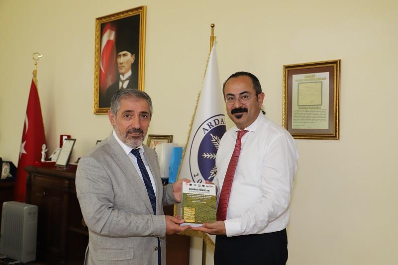 Süleyman Beledioğlu ve İsmail Yolcu programın ardından Rektörümüzü makamında ziyaret etti. Sohbet şeklinde gerçekleşen ziyaretin ardından Rektörümüz konuklarına 100. Yılında Ardahan Kongreleri Uluslararası Sempozyumu Bildirileri Kitabını, “Zaman ve Mekân: Ardahan” Sergi Kataloğunu ve yöresel ürünleri hediye etti.