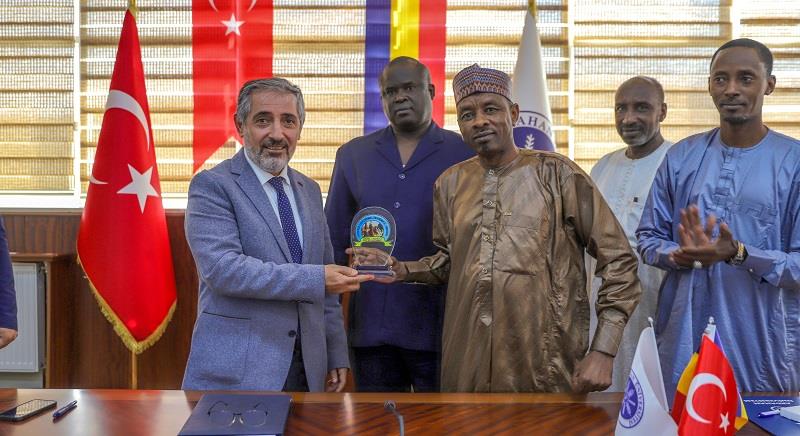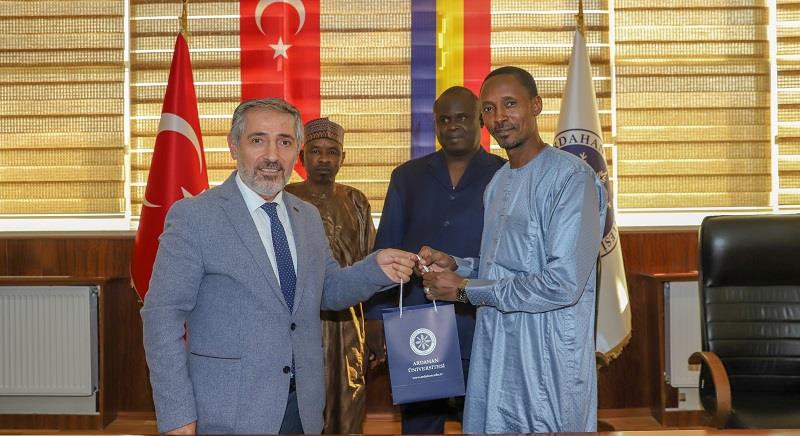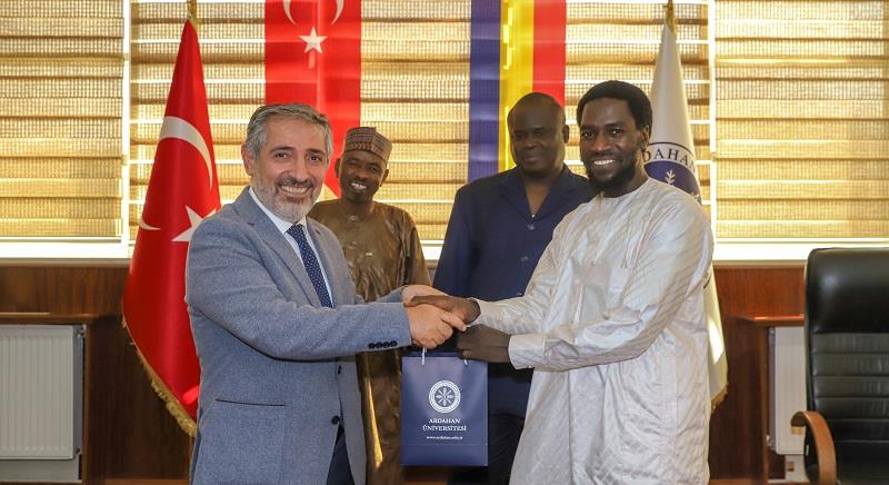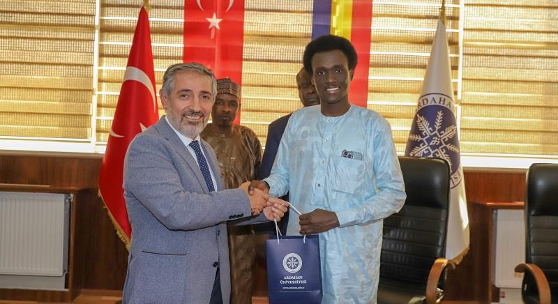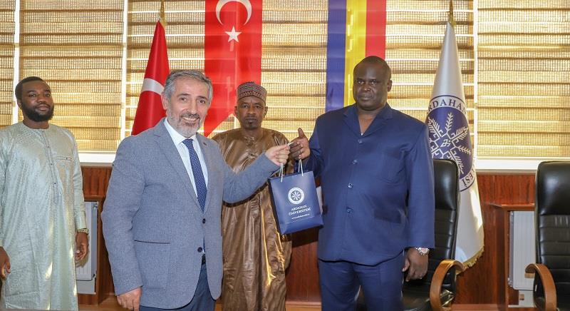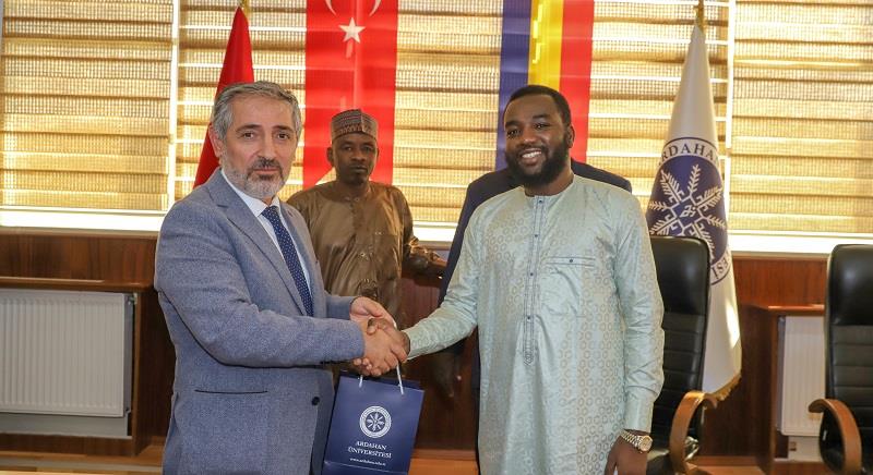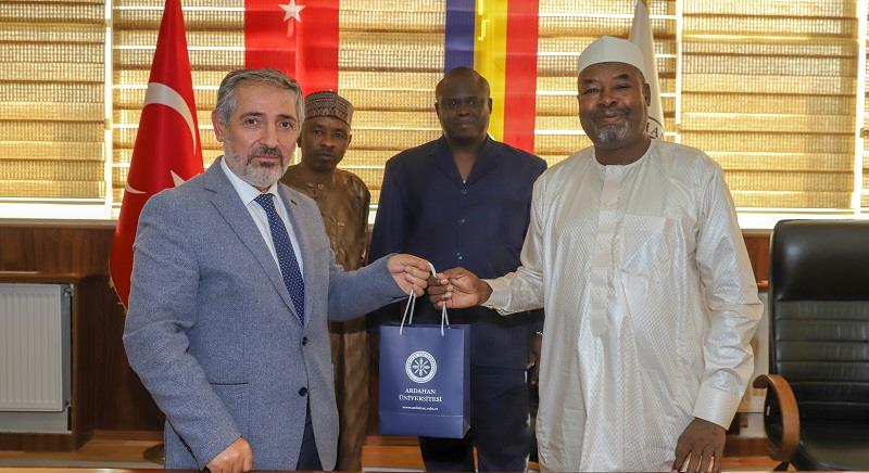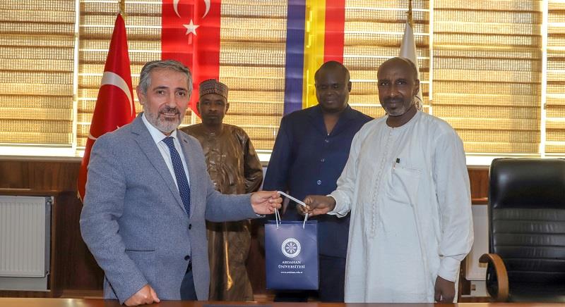 Üniversitemiz ve Çad Cumhuriyeti Yükseköğretim, Bilimsel Araştırma ve İnovasyon Bakanlığı arasında bilimsel ve kültürel iş birliği protokolü imzalandı. Dış İlişkiler Ofisimizin koordinatörlüğünde, Rektörlük Senato Odasında gerçekleştirilen imza törenine; Rektörümüz Prof. Dr. Mehmet Biber, Rektör Yardımcımız Prof. Dr. Mustafa Yıldız, Genel Sekreterimiz Kubilay Aras, Dış İlişkiler Ofisi Koordinatörü Dr. Öğr. Üyesi Doğan Saltaş, Çad Cumhuriyeti Yükseköğretim, Bilimsel Araştırma ve İnovasyon Bakanı Dr. Ali Waidou, Yükseköğretim Bakan Danışmanı Bohkit Fadoul Ali, Yükseköğretim Bakanlığı Genel Müdürü Ousman Mahamat Adam, ADEO (Çad Batı Ennedi Kalkınma Derneği) Başkanı Hissien Wardougou Djimet, ADEO Genel Sekreteri Haroun Goukounı, ADEO Koordinatörü Adoum Dadi ile TİKA (Türk İşbirliği ve Koordinasyon Ajansı Başkanlığı) Çad Eski Koordinatör Yardımcısı Erhan Vargün katıldı. İmza töreninde konuşan Rektörümüz şunları kaydetti: “Sayın Bakan, değerli misafirler ve kıymetli heyet, sizi Ardahan Üniversitesinde ağırlamaktan dolayı mutluluk duyduğumuzu belirtmek istiyorum. Bugün, Çad Cumhuriyeti Yükseköğretim Bakanlığı işbirliğinde, ADEO Vakfı ile Ardahan Üniversitesi arasında bilimsel ve kültürel işbirliği protokolü imzalanıyor. İnşallah bu vesileyle Çad Cumhuriyeti vatandaşı birçok öğrenci Ardahan Üniversitesi’nde öğrenim görecek. Bu iş birliği protokolünün sadece kurumlar arası işbirliği açısından değil aynı zamanda Türkiye ve Çad Cumhuriyeti ilişkilerinin daha ileriye taşınabilmesi açısından da önemli olduğuna inanıyoruz. Önümüzdeki dönemde Türkiye’den de Çad Cumhuriyeti’ne öğrenci göndermeyi arzu ediyoruz. Ardahan Üniversitesi 14 yıllık genç bir üniversite olmasına rağmen uluslararası bir üniversite olma yolunda emin adımlarla ilerlemektedir. Hâlihazırda Üniversitemizde 11 farklı ülkeden öğrenciler eğitim görmekte ve birçok yabancı akademisyenimiz Üniversitemizde bilimsel faaliyetler yürütmektedir. Hatta yabancı akademisyenlerimizin birçoğu Türkiye’den vatandaşlık alarak Üniversitemizde kalmayı tercih ettiler. Bu durum da onların Üniversitemize olan güvenini, çalıştıkları ortamın huzurunu ve rahatını ifade etmektedir. Rektörümüzün konuşmasının ardından söz alan Bakan Dr. Ali Waidou, protokolün Çad Cumhuriyetinden gelip Üniversitemizde eğitim alacak Çad’lı öğrenciler için fayda sağlayacağını belirterek, bu öğrencilerin ülkeye geri döndüklerinde önemli işler başaracaklarından emin olduklarını ifade etti. Konuşmaların ardından Dış İlişkiler Ofisi Koordinatörü Dr. Öğr. Üyesi Doğan Saltaş, Üniversitemizin akademik, idari ve fiziki yapısını anlatan bir sunum gerçekleştirdi. Karşılıklı hediye takdiminin ardından program sona erdi.
