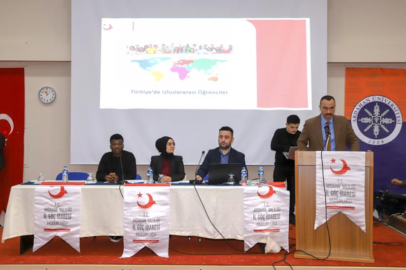 Ardahan İl Göç İdaresi Müdürlüğü tarafından Üniversitemiz İktisadi ve İdari Bilimler Fakültesi Konferans salonunda Çad, Nijerya ve Somali’den gelen yabancı uyruklu öğrencilerimiz için Uyum Eğitimi Toplantısı düzenlendi. Toplantıya; Genel Sekreterimiz Kubilay Aras, İl Göç İdaresi Müdürü Buğra Totan, Dış İlişkiler Koordinatörü Dr. Öğr. Üyesi Doğan Saltaş, Türkçe Öğretimi Uygulama ve Araştırma Merkezi akademisyenleri, üniversitemiz personeli ve öğrenciler katıldı. İl Göç İdaresi Müdürü Totan, öğrencilere gerekli hatırlatma ve bilgilendirmelerde bulundu. Daha sonra gerçekleştirilen soru-cevap bölümü ile öğrencilerin merak ettiği konular hakkında bilgi verildi.