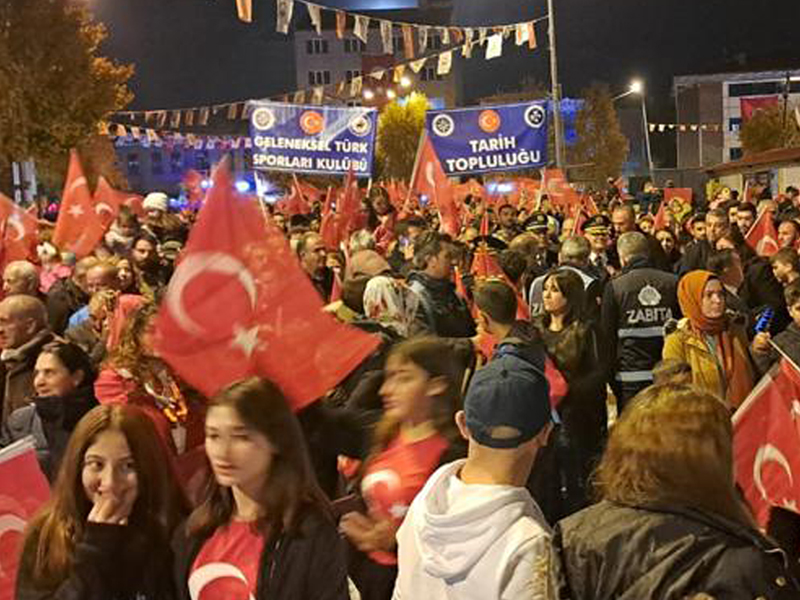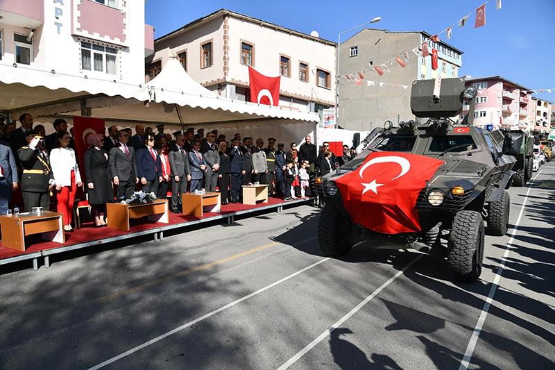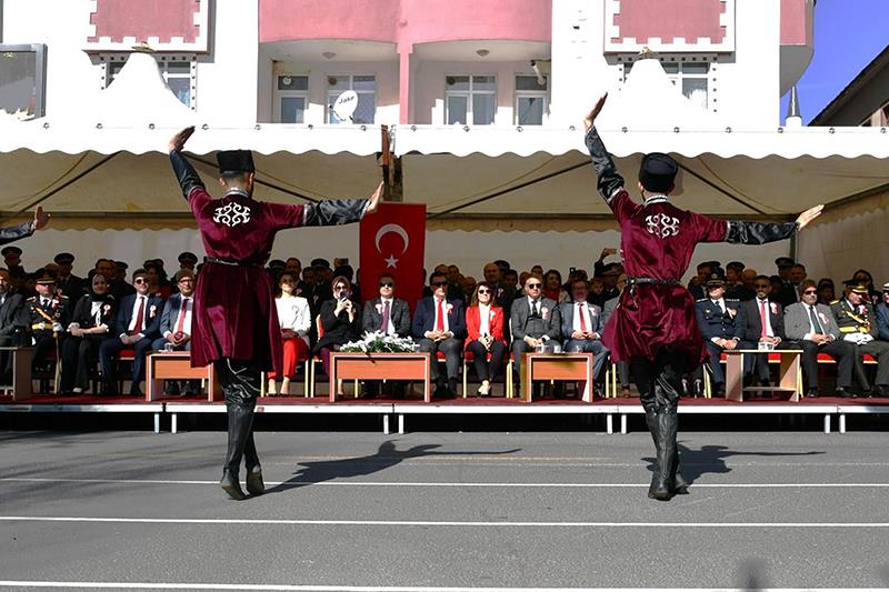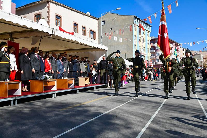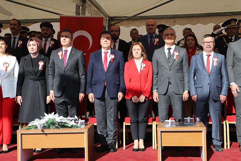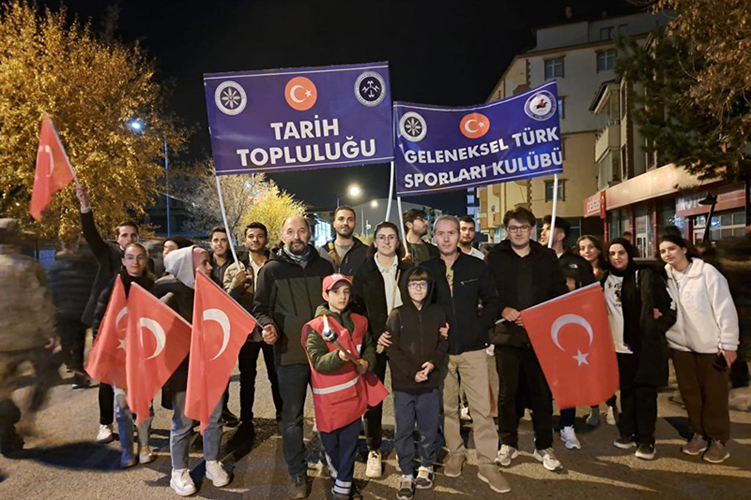 Üniversitemiz Rektör Yardımcısı Prof. Dr. Mustafa Yıldız, birbirinden farklı organizasyonlarla ilimizde gerçekleştirilen ve büyük bir coşku içinde kutlanan Cumhuriyetimizin Kuruluşunun 100. Yıl Dönümü etkinliklerine katıldı. Atatürk Anıtına çelenklerin sunumuyla başlayan kutlamalar, Valilik makamında tebriklerin kabul edilmesiyle devam etti. Vali Hayrettin Çiçek’in tebrikleri kabulünün ardından Kongre Caddesinde düzenlenen tören programına geçildi. Törende şiirler okundu, türküler seslendirildi. Komandoların silahlı gösteri yaptığı törende, halk oyunları gösterileri sunuldu. Çeşitli yarışmalarda dereceye giren öğrencilere ödüllerin de verildiği kutlama programı geçit töreni ile sona erdi. Akşam gerçekleştirilen "Bayraklı Yürüyüş" etkinliğine ise Yeşilay, Kızılay, Spor ve Gençlik Tarih Topluluğu kulüplerimiz ile personelimiz katıldı.