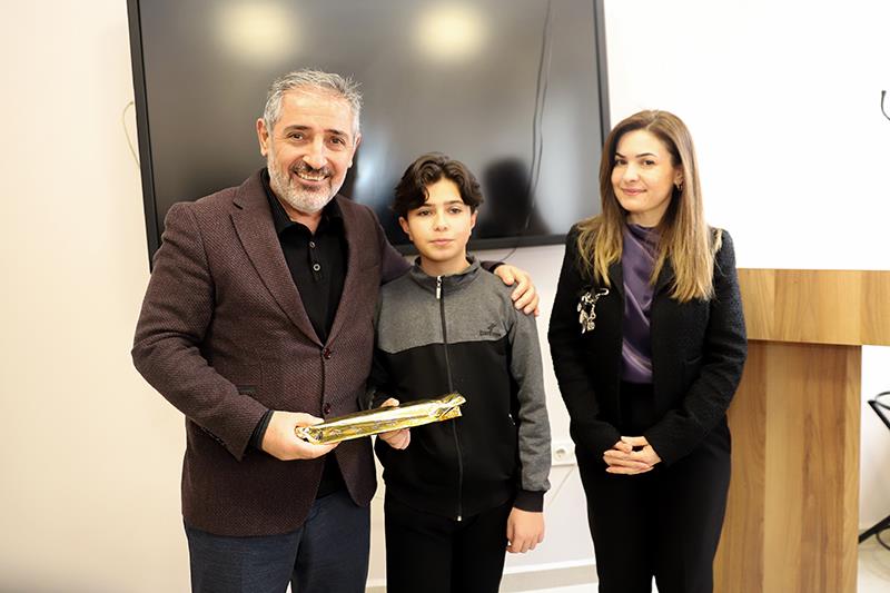 Üniversitemiz bünyesinde ARÜSEM’de (Dr. Arzu Kılıç Sürekli Eğitim Uygulama ve Araştırma Merkezi) Doç. Dr. Hürriyet Çimen ve Türkiye Satranç Federasyonu Ardahan İl Temsilcisi Murat Sedat Işıklı tarafından satranç eğitimi düzenlendi. Eğitim sonrasında ARÜSEM, Türkiye Satranç Federasyonu Ardahan İl Temsilciliği ve Gençlik Spor İl Müdürlüğü desteğiyle 7-10 yaş, 10-12 yaş küçükler ve 13-18 yaş yıldızlar satranç turnuvası il genelinde 70 sporcunun katılımıyla gerçekleştirildi. Törende konuşan Rektörümüz Prof. Dr. Mehmet Biber, Ardahan’da satranç alanında sporcu sayımızı artırmak, ulusal ve uluslararası başarılara imza atmak gayreti içerisinde olduğumuzu belirtti. Dereceye giren sporcularımıza Rektörümüz Prof. Dr. Mehmet Biber, Genel Sekreterimiz Kubilay Aras ve ARÜSEM Müdürü Doç. Dr. Özlem Eştürk ödüllerini takdim etti. 7-10 yaş aralığında; 1. Sena Kaleli, 2. Mina Yıldız ve 3. Mervan Dora Yıldız, 10-12 yaş aralığında; 1. Yamaç Salduz, 2. Selin Sümeyye Yıldız ve 3. Baytik Orozbayev oldu. 13-18 yaş yıldız sporcular arasında ise; 1. Mahmut Arda Hüseyinoğlu 2. Süleyman Gözcü ve 3. Ahmet Erdem Yıldız oldu. 1. olan sporcularımıza bilişim şirketi sahibi Mehmet Suat Işıklı tarafından akıllı saat hediye edildi.