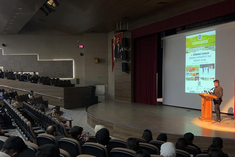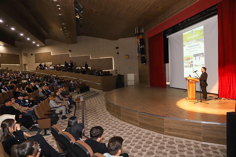 Üniversitemiz Kalite ve Akreditasyon Koordinatörlüğü ile Sağlık Kültür ve Spor Daire Başkanlığı tarafından I. Öğrenci Şurası düzenlendi. Aşık Şenlik Kültür Merkezi’nde gerçekleştirilen programa; Rektörümüz Prof. Dr. Mehmet Biber, Genel Sekterimiz Kubilay Aras, daire başkanları, akademik-idari personel ve öğrenciler katıldı. Sunuculuğunu Öğr. Gör. Hüseyin Aytuğ Çelik’in üstlendiği programın açılış bölümünde Üniversitemiz Kalite ve Akreditasyon Koordinatörü Dr. Öğr. Üyesi Erman Kaçar şura ile ilgili detaylı bilgiler paylaştı. Şurada bir konuşma gerçekleştiren Rektörümüz şunları kaydetti: “Sevgili öğrenciler I. Öğrenci şuramıza hoş geldiniz. Üniversite olmak büyük bir özveri arz eden ve süreklilik isteyen bir süreçtir. Göreve geldiğim ilk günden beri, 8 yıldır en önemli gündem maddemizi öğrencilerimiz olmuştur.