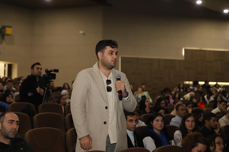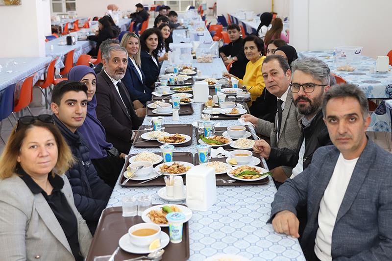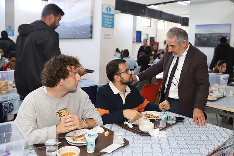 Ailelerininiz birinci önceliği sizin burada rahat ettiğinizi bilmeleridir. Ardahan Üniversitesi olarak öğrencilerimizin memnuniyetini en üst düzeyde tutmaya çalışıyoruz. Mezun olduktan sonra Ardahan’dan ve Üniversitemizden memnun bir şekilde ayrılmanız Üniversitemizi yeni tercih edecek olan öğrenciler için önemli bir referans olacaktır. Kaliteli ve nitelikli birer birey olarak mezun olmanız en büyük gayemizdir. Fikren, ilmen ve zihnen yetişmiş olmanızın birbirini tamamlayan üç önemli unsur olduğunu asla unutmayın. Sağlam bir zihin dünyanızın olmasını için çaba gösteriyoruz ve bu amaçla SKS koordinatörlüğünde kulüplerimiz aracılığıyla birçok kültürel ve sportif faaliyet yürütüyoruz. Bilimsel alanda aydınlanmanız için genç ve nitelikli akademik kadromuz tarafından önemli çalışmalar yapılmaktadır. Kariyer Planlama ve Mezun İzleme Uygulama ve Araştırma Merkezimiz, Üniversitemize geldiğiniz ilk günden itibaren kariyer planlaması yapmanız için size yol göstermektedir. Erasmus programlarımız ile yurt dışına gidin ve tecrübe edinin. İkinci hatta üçüncü bir dil öğrenin. Geleceğinize projeksiyon yapan çalışmalar yürütün. Bizler hep birlikte Üniversitede bir aileyiz, Ardahan’da bir aileyiz. Sizlere başarılı ve sağlıklı bir akademik yıl diliyorum”. Rektörümüzün konuşmasının ardından Kalite ve Akreditasyon Koordinatör Yardımcısı Öğr. Gör. Dr. Benazir Öztürk, Üniversitemiz Kalite Kulübü hakkında bilgiler verdi. Şuranın kapanış bölümünde Rektörümüz ve personelimiz, öğrencilerimizin görüş ve önerilerini dinleyerek sorularını yanıtladı. Programın ardından Rektörümüz, öğrencilerle birlikte yemekhanede yemek yedi.