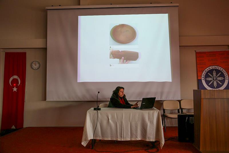 Ardahan Üniversitesi Güzel Sanatlar Fakültesi Resim Bölümü öğretim üyesi Doç. Dr. Filiz Öztürk, Turizm ve Otelcilik Yüksek Okulu Gastronomi Bölümü’nün daveti üzerine "Pileki (Toprak Pileki) Yapımı ve Kullanımı" konulu bir sunum ve workshop gerçekleştirdi. Toprak pileki kullanımının geleneksel bir el sanatı olarak tanıtılması ve katılımcılara uygulamalı olarak gösterilmesi amacıyla düzenlenen etkinliğe bölümün öğrencileri ve öğretim üyeleri katıldı. Öztürk, etkinlikte pileki ile ilgili yaptığı araştırmaları ve etkinliğin amacını şu sözleriyle aktardı “pileki, Ardahan’da merkez ve köylerde az da olsa hala kullanılmaktadır. 2017’den beri bu coğrafyada pileki ile ilgili araştırmalar yapıyorum, pileki ile ilgili yaptığım Bap Projesi de yeni bitti. Araştırmalarım, pileki kullanımının yakın gelecekte sona ereceği sonucuna varmakta ve bu durum, kültürel mirasın korunmasının önemini artırmaktadır. Bu nedenle sürdürülebilir çözüm üretecek yeni bir proje hazırlığı içinde olduğumu söylemek istiyorum. Buna ek olarak 2025 Mart ayında gerçekleştirilecek olan “Ardahan Pileki Çalıştayı” hazırlığını yapmaktayız. Yine 2025 yılı içerisinde aynı konu ile ilgili sempozyum planlamaktayız. Çünkü bu malzemenin doğru şekilde işlenmesi ve sunulması, yerel mutfakların global arenada da tanınmasına yardımcı olabilir. Bu bağlamda, pilekinin modern mutfak sanatlarında da yaratıcı ve yenilikçi kullanımları, gastronomi dünyasında farklı tatlar ve deneyimler yaratılmasına olanak tanıyabilir. Pileki, yerel mutfak kültürlerinin yaşatılması ve gelişmesi adına büyük bir öneme sahiptir.” Sunumun arkasından Öztürk, workshop uygulamasına geçerek pileki biçimlendirdi. Workshop’un devamında açık alana geçildi ve pilekide ekmek pişirimi gerçekleştirildi. Ekmek hamurunun hazırlanmasında ise Ardahan Üniversitesi tarafından üretilmiş kavılca buğdayı kullanıldı.