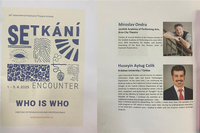 Üniversitemiz Sosyal Bilimler MYO Sahne Işık ve Ses Teknolojileri Programı Öğr. Gör. H. Aytuğ Çelik, Erasmus+ Personel Hareketliliği Programı nedeniyle Çekya’da çeşitli etkinlik ve temaslarda bulundu. Dünya Tiyatro Günü’nde İstanbul Aydın Üniversitesi Güzel Sanatlar Fakültesi Drama ve Oyunculuk Bölümü öğrencilerine geleneksel Karagöz oyunu hakkında gösterim ve atölye çalışması yapan Öğr. Gör. Hüseyin Aytuğ Çelik, Erasmus+ Personel Hareketliliği Programı dolayısıyla Prag’a gitti. Çekya’nın Prag ve Brno kentlerinde bulunan Çelik, Prag kentinde bulunan Türk Büyükelçiliği’nde Türk vatandaşlara Karagöz ve Meddah gösterileri sundu. Gösteriler, Büyükelçilik konutunda düzenlenen davete katılan Türk vatandaşların yoğun ilgi ve beğenisini topladı. Ardından, Brno kentindeki JAMU sanat akademisince geleneksel olarak düzenlenen “Setkani Encounter” tiyatro okulları festivaline katılan Çelik, burada Avrupa’nın çeşitli ülkelerinden ve üniversitelerinden gelen sanatçı ve akademisyenlerle düzenlen bir toplantıya da iştirak ederek üniversitemizi ve Sahne Işık ve Ses Teknolojileri Programı’nı tanıttı, çeşitli anlaşma ve iş birlikleri için ön görüşmelerde bulundu.