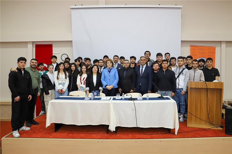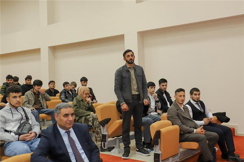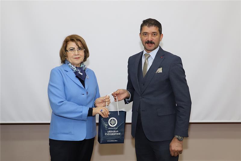 Ziyaretin ardından, Azerbaycanlı öğretim üyeleri ve öğrencilerle Rektör Yardımcımız Prof. Dr. Zafer Aykanat, Uluslararası Öğrenci Koordinatörü Dr. Öğr. Üyesi Nurgül Moldalieva, İktisadi ve İdari Bilimler Fakültesi Dekanı Prof. Dr. Ali Kemal Çelik ve öğretim üyelerimizin katılımıyla bir toplantı gerçekleştirildi. Toplantıda Doç. Dr. Necibe Nesibova, Ardahan Üniversitesinin Türkiye’deki başarılı üniversitelerden biri olduğunu vurgulayarak Üniversitemizin gençlere verdiği imkanlardan faydalanmalarını, eğitimdeki başarılarını yükseltmeleri ve geleceğin kurucuları olarak kendilerini en iyi şekilde yetiştirmeleri gerektiğini belirtti. Öğrencilerimizden gelen soruların cevaplanmasının ardından Rektör Yardımcımız Prof. Dr. Zafer Aykanat, Üniversitemiz yönetimine ve akademik-idari personeline teşekkür eden Doç. Dr. Necibe Nesibova’ya hediye takdiminde bulundu ve öğrencilerle hatıra fotoğrafı çekilmesiyle toplantı sona erdi.