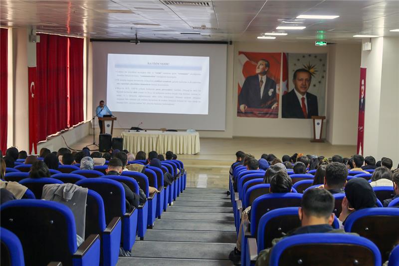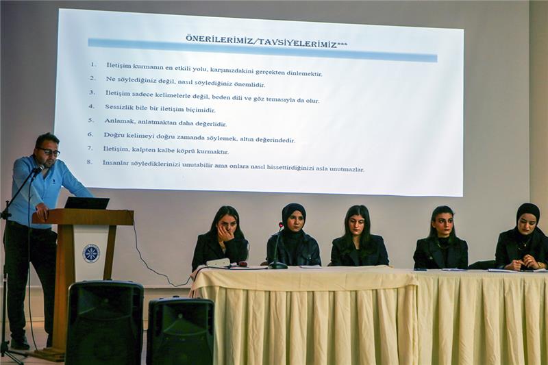 Üniversitemiz Sağlık Hizmetleri Meslek Yüksekokulu Dr. Öğr. Üyesi Fırat Yardımcıel, İşkur personeline yönelik “Kişiler Arası İletişim ve Etkili İletişim” başlıklı bir konferans verdi. Konferansta etkili iletişim, bireyler arasındaki bilgi alışverişinin açık, anlaşılır ve karşılıklı anlayış temelinde gerçekleşmesini sağlayan önemli bir beceri olduğuna vurgu yapıldı. Sözlü ya da yazılı olarak ifade edilen düşüncelerin doğru bir şekilde aktarılması, yanlış anlamaların önüne geçerken güven, iş birliği ve empati ortamını da güçlendirdiği belirtildi.
