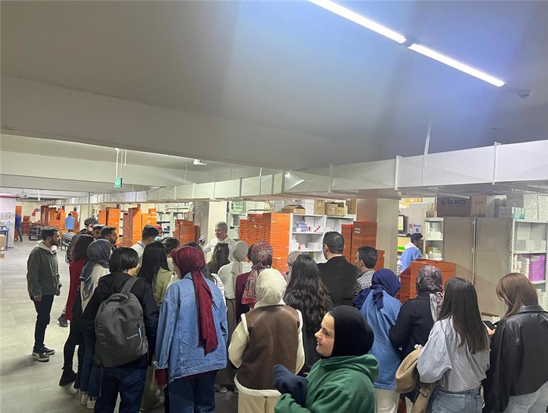 Üniversitemiz Nihat Delibalta Göle Meslek Yüksekokulu Müdürlüğü ve Eczane Hizmetleri Bölümü Başkanı Doç. Dr. Serhat Özaslan, Eczane Hizmetleri Bölümü Öğretim Üyesi Doç. Dr. Yeliz Demir ve MYO Müdür Yardımcısı Öğr. Gör. Burçak Yakın’ın ortak çalışması ile Eczane Hizmetleri 2. sınıf öğrencilerine yönelik teknik gezi gerçekleştirildi. Etkinlik kapsamında; ilk olarak, Özel firmaya ait Erzurum’da bulunan ecza deposu ziyaret edildi. Öğrenciler, Ecza Deposu’nda; Stok Kontrol ve Depolama Yöntemleri, Depo Yönetimi, İş Akışı ve sair süreçler hakkında uygulamalı bilgi sahibi oldu. Ecza deposundaki bilgilendirme sonrası öğle yemeği ikramı ve fotoğraf çekimi ile gezinin ilk ayağı tamamlandı. Teknik gezinin ikinci ayağında, Erzurum Şehir Hastanesi Baş Eczacı Mehmet Fethi Üznük ve Eczane Teknisyenleri eşliğinde Erzurum Şehir Hastanesi bünyesinde yer alan 8 farklı Bölüm Eczanesi incelenerek Birim bazında ve Bölümler arası koordinasyona yönelik süreçler aktarıldı. Gezinin son ayağında ise 13. Bölge Erzurum Eczacılar Odası Seminer Salonu’nda Erzurum Eczacı Teknisyenleri Derneği Başkanı Olcay Çiftçi’nin sunumuyla "Eczane Teknikerlerinin Sorumlulukları ve Hakları" ile ilgili brifing verildi. Akademisyenlerimiz, teknik gezi kapsamında planlama ve organizasyon sürecinin hızlı bir şekilde ilerlemesinde katkılarını esirgemeyen Olcay Çiftçi’ye, Selçuk Ecza Deposu Erzurum Şubesi Şube Müdürü Erkan Sarıkaya’ya, Satın Alma Müdürü Önder Özcan’a, 13. Bölge Erzurum Eczacılar Odası Başkanı Selami Cengiz’e katkılarından ve katılımlarından dolayı teşekkürlerini iletti.