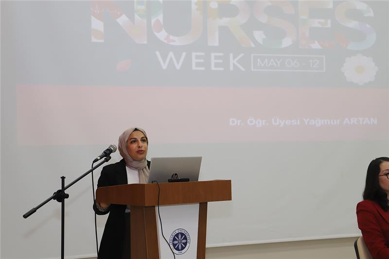 Üniversitemiz Sağlık Bilimleri Fakültesi Hemşirelik Bölümü tarafından hazırlanan Hemşireler Haftası Etkinliği Teknik Bilimler Meslek Yüksekokulu Konferans salonunda gerçekleştirildi. Etkinlik, hemşirelik mesleğinin toplum sağlığındaki vazgeçilmez rolünü vurgulamak, hemşirelerin karşılaştığı zorluklara dikkat çekmek ve sağlık hizmetlerindeki katkılarını takdir etmek amacıyla düzenlendi. Rektör Yardımcımız Sayın Prof. Dr. Zafer Aykanat, Sağlık Bilimleri Fakültesi Dekan Yardımcısı Doç. Dr. Nurcan Erbil, Hemşirelik Bölüm Başkanı Sayın Doç. Dr. Bahanur Malak Akgün ve Ardahan Devlet Hastanesi Sağlık Bakım Hizmetleri Müdürü Sayın Ayla Kara’nın katılımıyla gerçekleşen etkinlikte akademisyenler ve öğrenciler bir araya geldi. Açılış konuşmasını yapan Hemşirelik Bölüm Başkanı Doç. Dr. Bahanur Malak Akgün’ ün “Dünden Bugüne Hemşirelik” adlı sunumunun ardından, Dr. Öğr. Üyesi Derya Şimşekli’ nin moderatörlüğünde “Klinikten Akademiye Hemşirelik” temalı panel yürütüldü. Dr. Öğr. Üyesi Yağmur Artan’ın ICN’nin 2025 yılı temasını sunduğu panelde Sağlık Bakım Hizmetleri Müdürü Ayla Kara, Dr. Öğr. Üyesi Tuğba Mert, Dr. Öğr. Üyesi Burcu Yılmaz, Arş. Gör. Rumeysa Lale Toraman ve Arş. Gör. Zeynep Yıldırım ise klinik ve akademik alandaki hemşirelik deneyimlerini paylaştı.