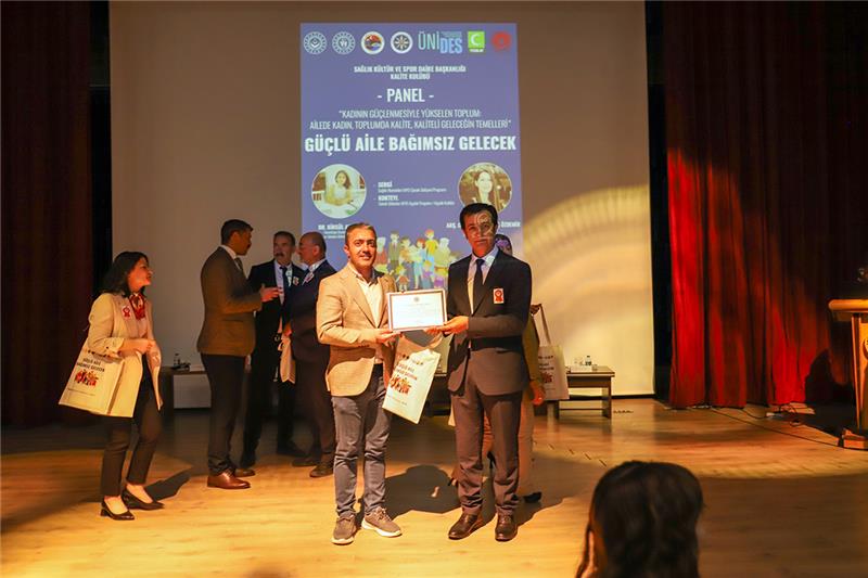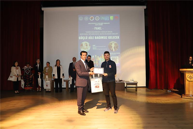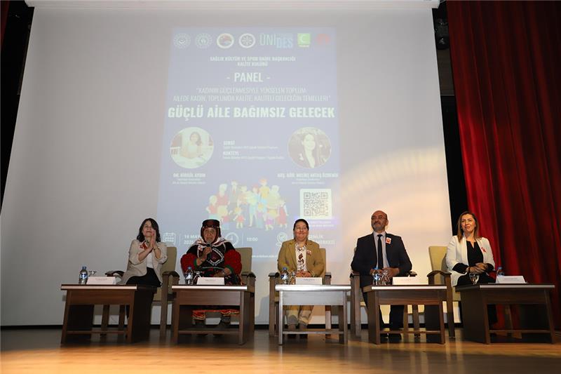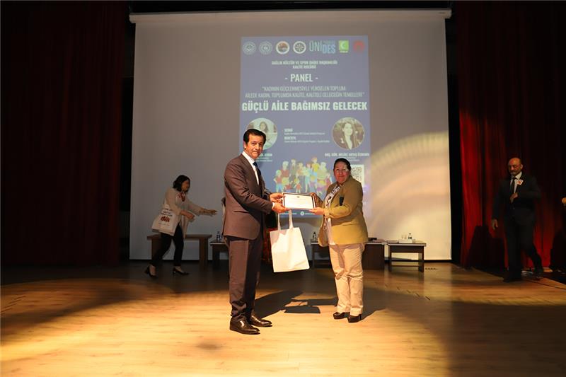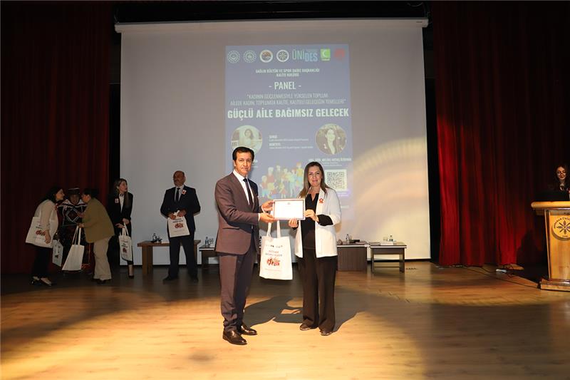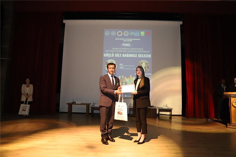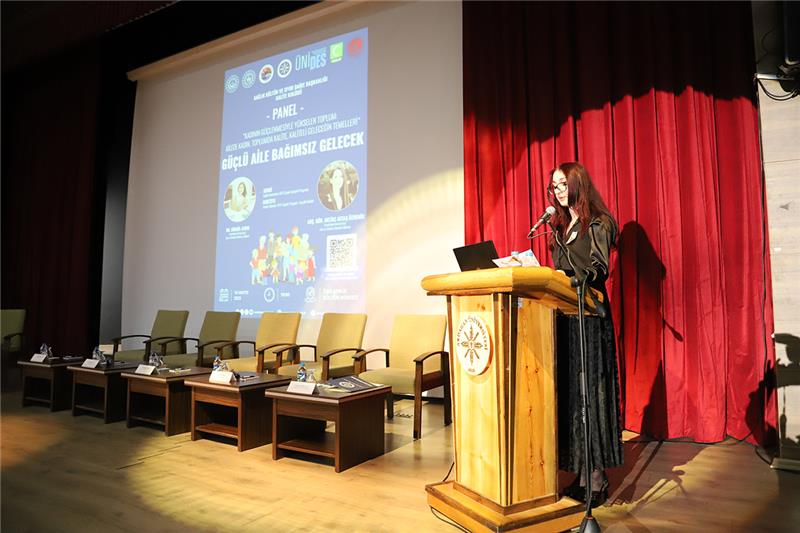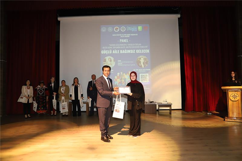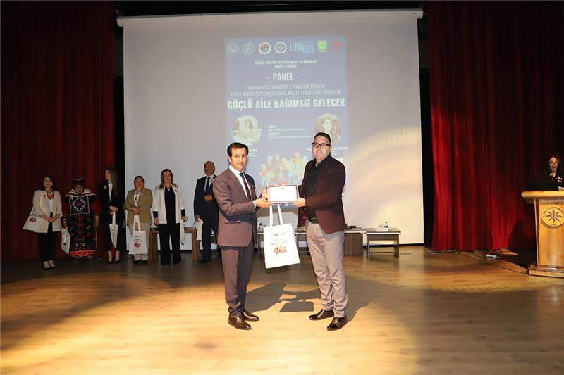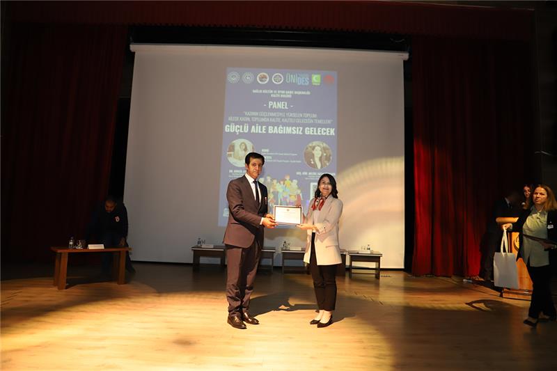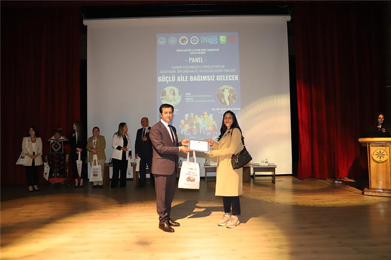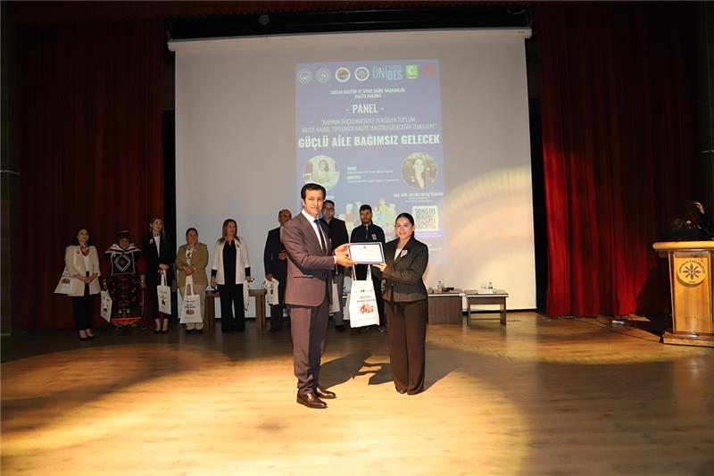Üniversitemiz, toplumsal farkındalık yaratma hedefiyle yine anlamlı bir etkinliğe ev sahipliği yaptı. Sağlık, Kültür ve Spor Daire Başkanlığı Kalite Kulübü’nün yürüttüğü UNİDES Projesi kapsamında düzenlenen panel yoğun ilgi gördü. Panele konuşmacı olarak katılan Hacettepe Üniversitesi Aile ve Tüketici Bilimler bölümünden Dr. Birgül Aydın ve Arş. Gör. Melike Aktaş Özdemir, kadının bireysel güçlenmesiyle başlayan toplumsal kalkınma sürecine dair etkileyici bilgiler ve akademik bakış açıları sundu. Etkinlik; Gençlik ve Spor İl Müdürlüğü, Aile ve Sosyal Hizmetler İl Müdürlüğü ile Yeşilay Şube başkanlığı iş birliğiyle ve destekleriyle gerçekleştirildi. Panele; Rektörümüz Prof. Dr. Öztürk Emiroğlu, il protokol üyeleri, kamu kurum ve kuruluş temsilcileri, STK temsilcileri, personelimiz ile öğrencilerimiz katıldı. Rektörümüz Prof. Dr. Öztürk Emiroğlu, panelist akademisyenlere teşekkür belgelerini takdim ederek, üniversite olarak kadın gücünün desteklenmesini bir sorumluluk olarak gördüklerini ifade etti. Panelin ardından Çocuk Gelişimi Bölümü, “Sıfır Atık” projesi kapsamında çevre bilinci oluşturmak amacıyla stant açarak bilgi paylaşımlarında bulundu. Aşçılık Programı ve Kulübü ise etkinliğe özel hazırladıkları kokteyl ile misafirlere keyifli bir ortam sundu. Ayrıca Yeşilay da bağımlılıkla mücadeleye dikkat çekmek amacıyla stant açarak broşür dağıttı ve farkındalık oluşturdu.