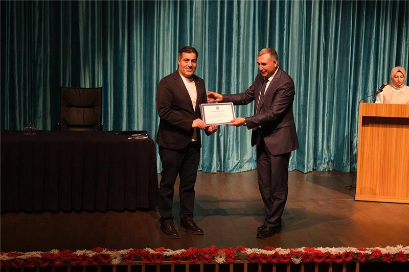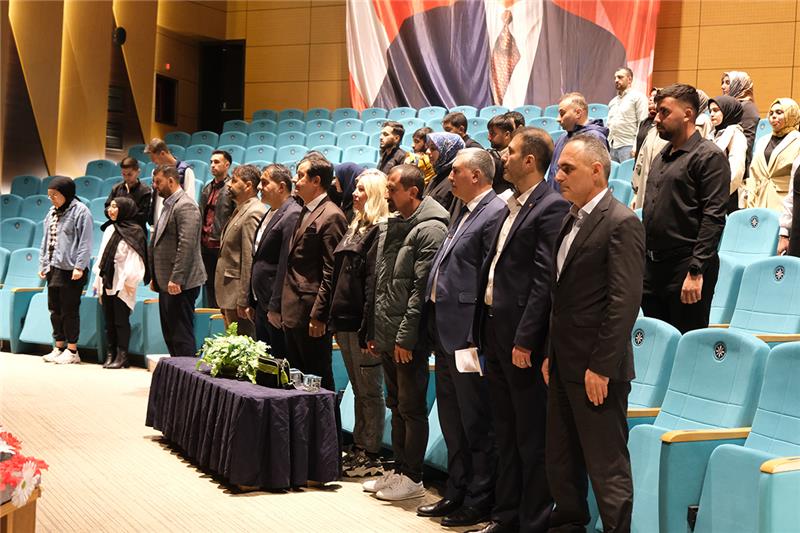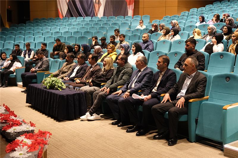 Üniversitemiz Sağlık Kültür ve Spor Daire Başkanlığı Yeni Nesil Gençlik Kulübünün düzenlemiş olduğu, "Unutulan Kahraman Ardahan Milletvekili Halid Karsıalan namıdiğer "Deli Halid Paşa" isimli Konferans, Üniversitemiz Yenisey Kampüsü içerisinde yer alan Hoca Ahmet Yesevi Konferans Salonunda gerçekleştirildi. Saygı duruşu ve İstiklal Marşının söylenmesinin ardından Hoca Ahmet Yesevi Camii İmam-Hatibi Yavuz Selim Özarslan tarafından Kur’an-Kerim tilavet edildi. Ardından İlahiyat Fakültesi Dekan Yardımcısı Dr. Öğr. Üyesi Taha Yılmaz tarafından "Ağlama Karanfil" isimli ezgi terennüm edildi. Ardahan Salim Dursunoğlu Anadolu Lisesi 9. sınıf öğrencisi Hümeyra Büşra Yılmaz, Mehmet Akif Ersoy’un "Bülbül" isimli şiirini okudu. Ardahan Üniversitesi İlahiyat Fakültesi İslam Tarihi ve Sanatları Bölümü Başkanı Doç. Dr. Erdoğan Polat tarafından, Trablusgarp Savaşı’ndan İstiklal Harbi’ne kadar Halit Paşa’nın fedakarane hayatı anlatılarak, Kafkas Cephesinde Ardahan, Kars, Şavşat ve Artvin’in kurtarılmasındaki hizmetleri üzerinde duruldu. 42 yıllık ömrünün 22 yılını devleti ve milletine adayan, Ardahan’ın fahri hemşerisi Eyüplü Halid Paşa’nın düşman kurşunu ile 13 kez yaralanıp hayatta kalmasına karşın; Ankara Büyük Millet Meclisinde hazin bir şekilde dost kurşunu ile hayata gözlerini kapaması, son nefesini vermeden önce bile cephelerde gösterdiği fedakarlıkları sayıklaması anlatılarak konferansa son verildi.