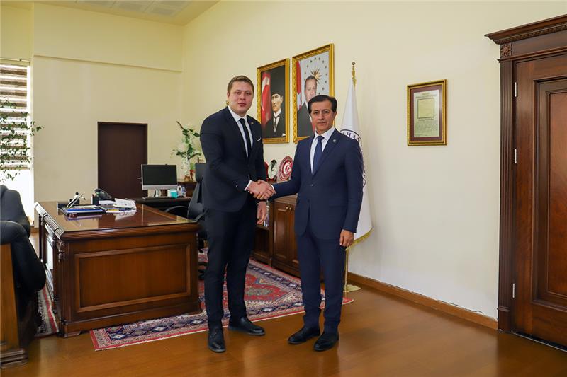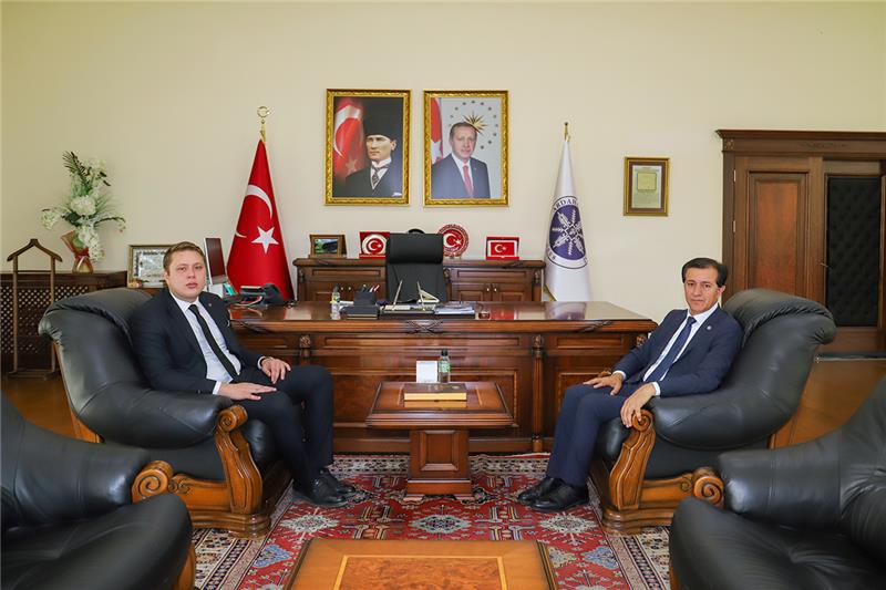 Damal Kaymakamı Ahmet Sami Meram, Rektörümüz Prof. Dr. Öztürk Emiroğlu’na hayırlı olsun ziyaretinde bulundu. Rektörlük makamında gerçekleşen ziyarette, Rektörümüzü tebrik eden Kaymakam Meram, kendisine yeni görevinde başarılar diledi. Rektörümüz ise nazik ziyaretinden dolayı Kaymakam Meram’a teşekkür etti. Ziyaret, karşılıklı iyi dileklerin ardından günün anısına çekilen hatıra fotoğrafı ile sona erdi.