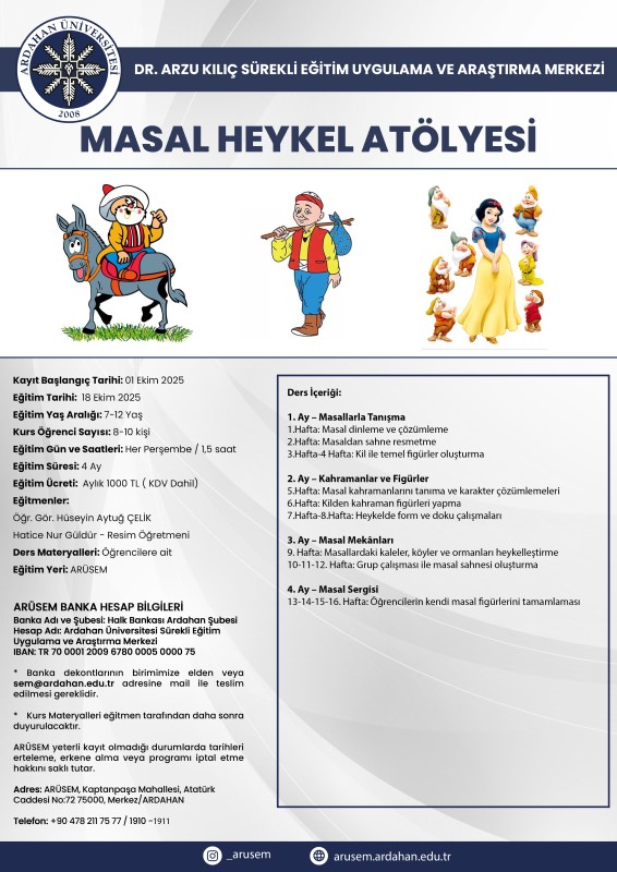 Masal Heykel Atölyesi Kursu için Tıklayınız..