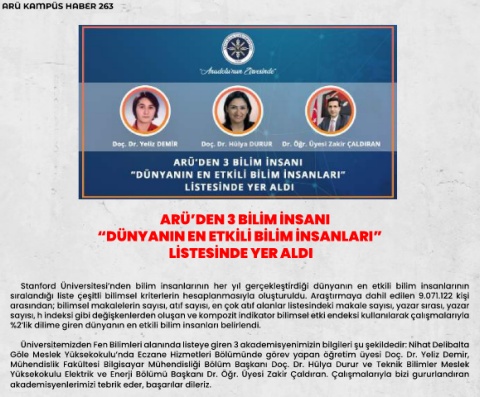 Üniversitemizden Fen Bilimleri alanında listeye giren 3 akademisyenimizin bilgileri şu şekildedir: Nihat Delibalta