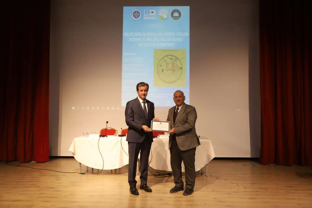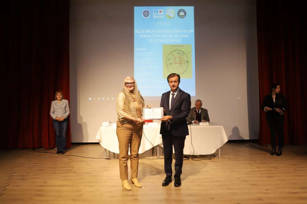 Rektörümüz; programın oluşum sürecine katkı sunan Çocuk ve Gençlik Edebiyatı Yazarları Birliği Başkanı Bican Veysel Yıldız’a, organizasyonu yürüten Türkoloji Kulübü akademik danışmanı Doç. Dr. Gürhan Çopur’a, kulüp öğrencileri ile etkinliğin gerçekleştirilmesine katkı sağlayan akademik ve idari personele teşekkürlerini iletti. Program, Rektörümüz Prof. Dr. Öztürk Emiroğlu tarafından panelistlere teşekkür belgelerinin takdim edilmesiyle sona erdi.