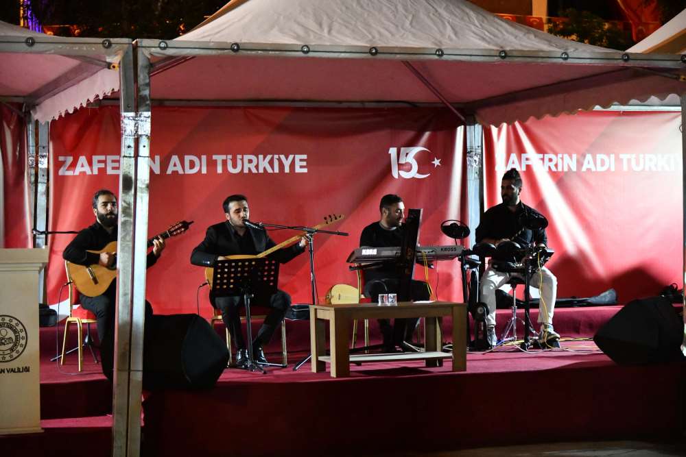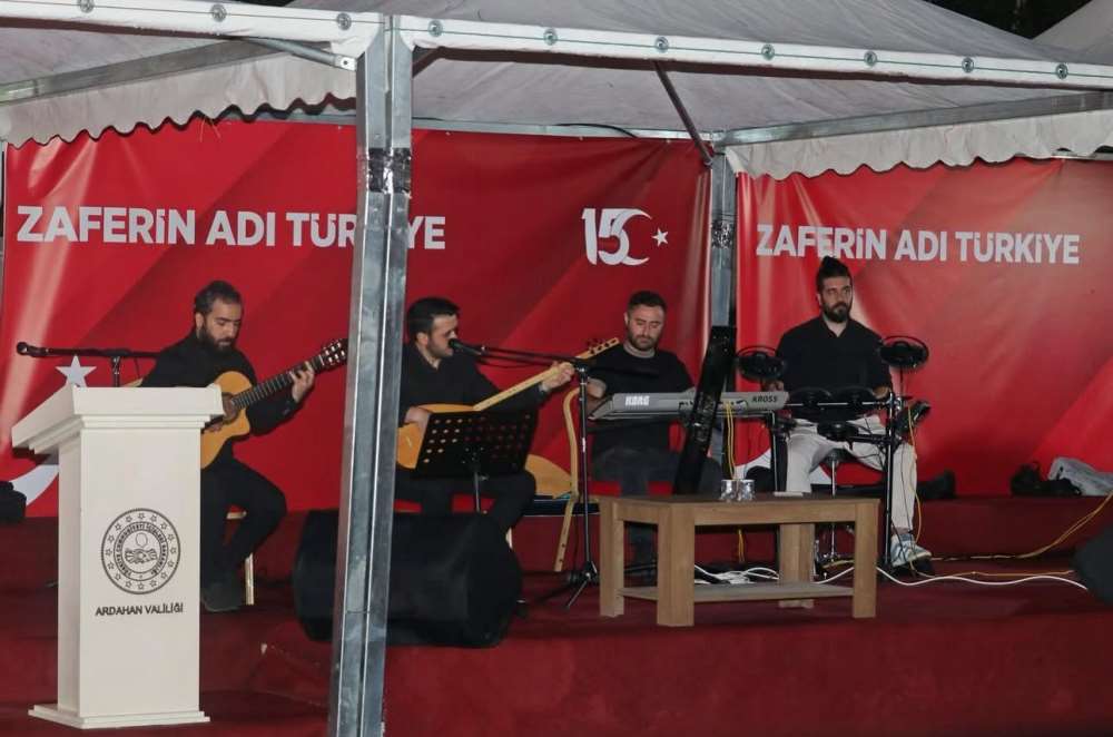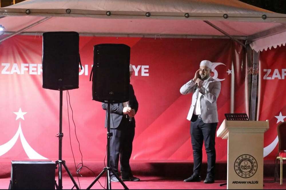 Milli Egemenlik Meydanı’nda devam eden program, Kur’an-ı Kerim tilaveti ve şehitlerimiz için yapılan dualarla devam etti. Cumhurbaşkanımız Sayın Recep Tayyip Erdoğan’ın 15 Temmuz’a ilişkin video mesajının izlenmesinin ardından, üniversitemiz Müzik Bölümü akademisyenleri tarafından kahramanlık türküleri seslendirildi. Üniversitemiz tarafından protokol üyelerine ve vatandaşlarımıza pilav ikramında bulunuldu. Saat 00.13’te tüm yurtta olduğu gibi Ardahan’da da sela okunarak demokrasi nöbetine geçildi.