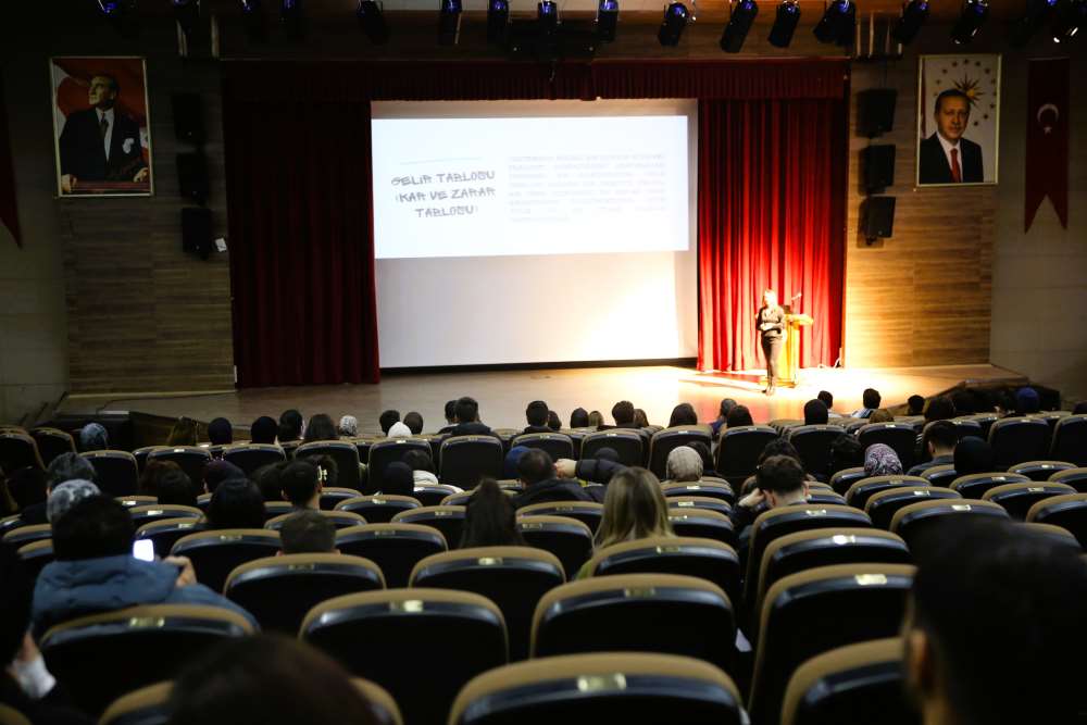 Üniversitemiz Sağlık Kültür ve Spor Daire Başkanlığı koordinasyonunda, İŞKUR Gençlik Programı faaliyetleri dâhilinde planlanan “Finansal Okuryazarlık” eğitimi, 15 Nisan 2026 Çarşamba günü Âşık Şenlik Kültür Merkezi Konferans Salonunda gerçekleştirildi. Üniversitemiz İktisadi ve İdari Bilimler Fakültesi (İİBF) İşletme Bölümü, Muhasebe ve Finansman Ana Bilim Dalından Dr. Öğr. Üyesi Diler Türkoğlu tarafından verilen derste, finansal yönetim ve tasarruf bilincine dair temel stratejiler ele alındı. Üniversitemiz akademik ve idari personeli ile öğrencilerinin katılımıyla takip edilen program, genç katılımcıların finansal farkındalıklarını artırmaya yönelik sunumların ardından sona erdi.
